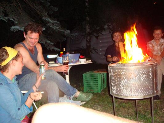 Neben der individuellen Arbeit an eigenen Projekten war das gemeinschaftliche Leben ein zentraler Bestandteil: Regelmäßige Veranstaltungen, Ausstellungen, offene Salons, Filmabende und spontane Performances prägten den Alltag ebenso wie gemeinsame Abende am Feuer, mit Grill und Gesprächen vor dem Foyer.
