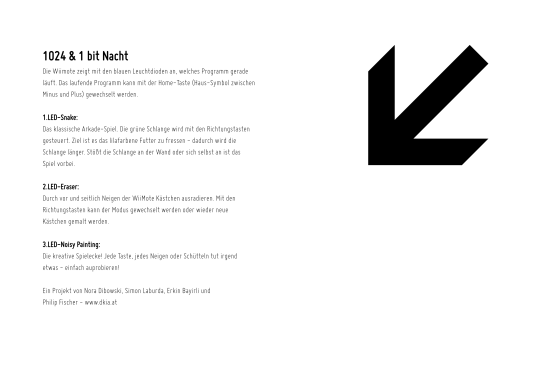Die Installation ermöglichte verschiedene interaktive Erlebnisse, wie das Spielen von Snake oder das Erstellen von Pixelkunst. Durch die Bewegungen der Wii Remote konnten die Besucher Pixel auf einer großen LED-Matrix platzieren und somit kreativ mit der Technik spielen. Es war eine Verschmelzung von Spiel und Kunst, die den Raum mit einer dynamischen, visuell ansprechenden Erfahrung füllte.