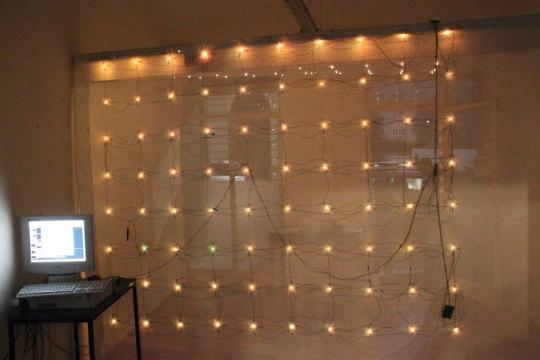 Für den jährlichen Atelierrundgang Q202 im zweiten Wiener Gemeindebezirk haben Simon Laburda und ich eine interaktive LED-Installation entwickelt. Die Installation war so konzipiert, dass Besucher über eine Wii Remote in Echtzeit mit ihr interagieren konnten.
