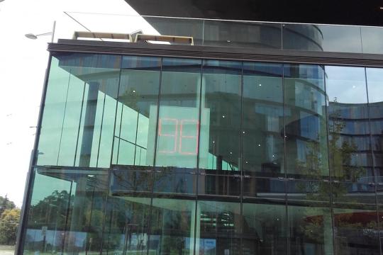 Nach unserer erfolgreichen Arbeit an der campusCOUNTdown-Installation wurden Simon Laburda und ich erneut vom Büro für offensive Aleatorik (BOA) beauftragt, eine weitere Countdown-Uhr zu entwickeln. Diese wurde im Financial Life Park nahe dem Wiener Hauptbahnhof installiert.