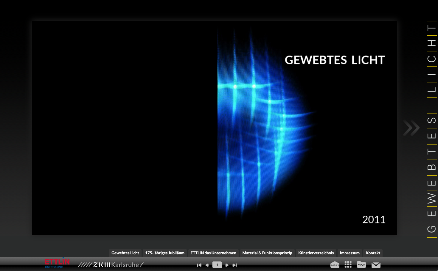 Nach der erfolgreichen Ausstellung des Wettbewerbs "Gewebtes Licht" – 2011, ZKM | Zentrum für Kunst und Medientechnologien in Karlsruhe, wurden wir gebeten einen Online Austellungskatalog der ausgestellten Werke zu konzipieren und zu realisieren. Die Herausforderung war einen Online Katalog so zu programmieren, dass er auf allen Systemen (IPhone, IPad, Smartphones ... ) funktioniert. Wir haben daher auf die Javascripttechnologien zurückgegriffen.