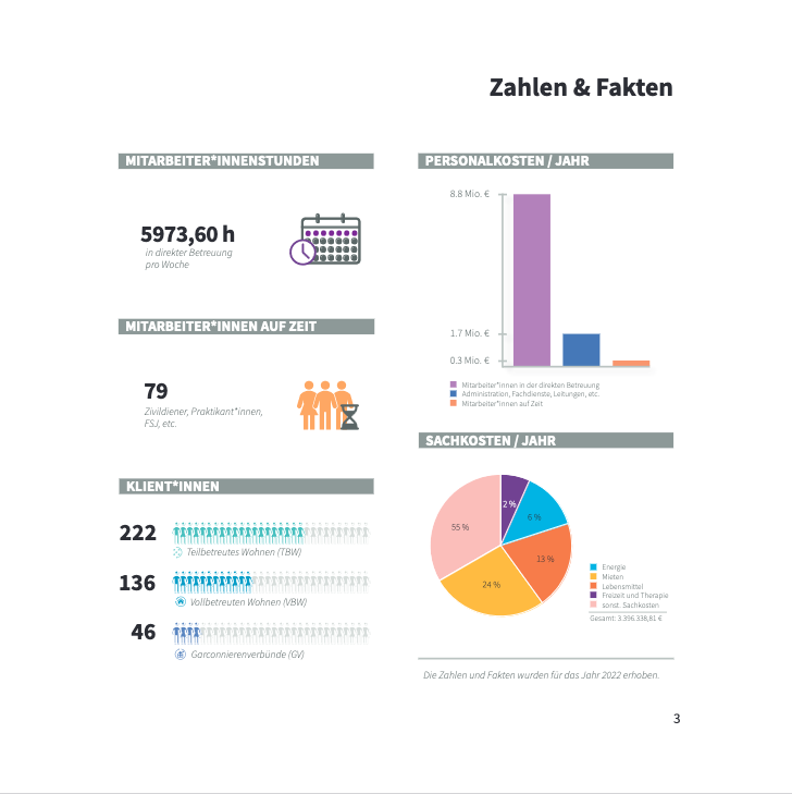 Für die drei verschiedenen Wohnformen Teilbetreutes Wohnen, Garconnierenverbünde & Vollbetreutes Wohnen für Menschen mit Behinderungen habe ich jeweils neue Farbräume und Logos entworfen und ihnen eine eigene Identität gegeben, um die Besonderheiten ihres Wohnbereiches zu unterstreichen.