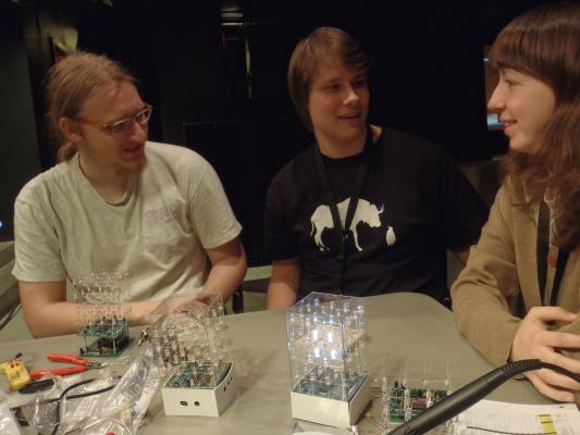 Technisch besteht der Cube aus zwei Platinen, die über einen 16-poligen Anschluss miteinander verbunden sind. Die LEDs sind auf der oberen Platine, die auch den Hauptprozessor und die Audio-Wiedergabeschaltung enthält. Wenn der Cube eingeschaltet wird, übernimmt zunächst der Prozessor die Kontrolle, während das Arduino nur aktiv wird, wenn keine Computerkommunikation erkannt wird.