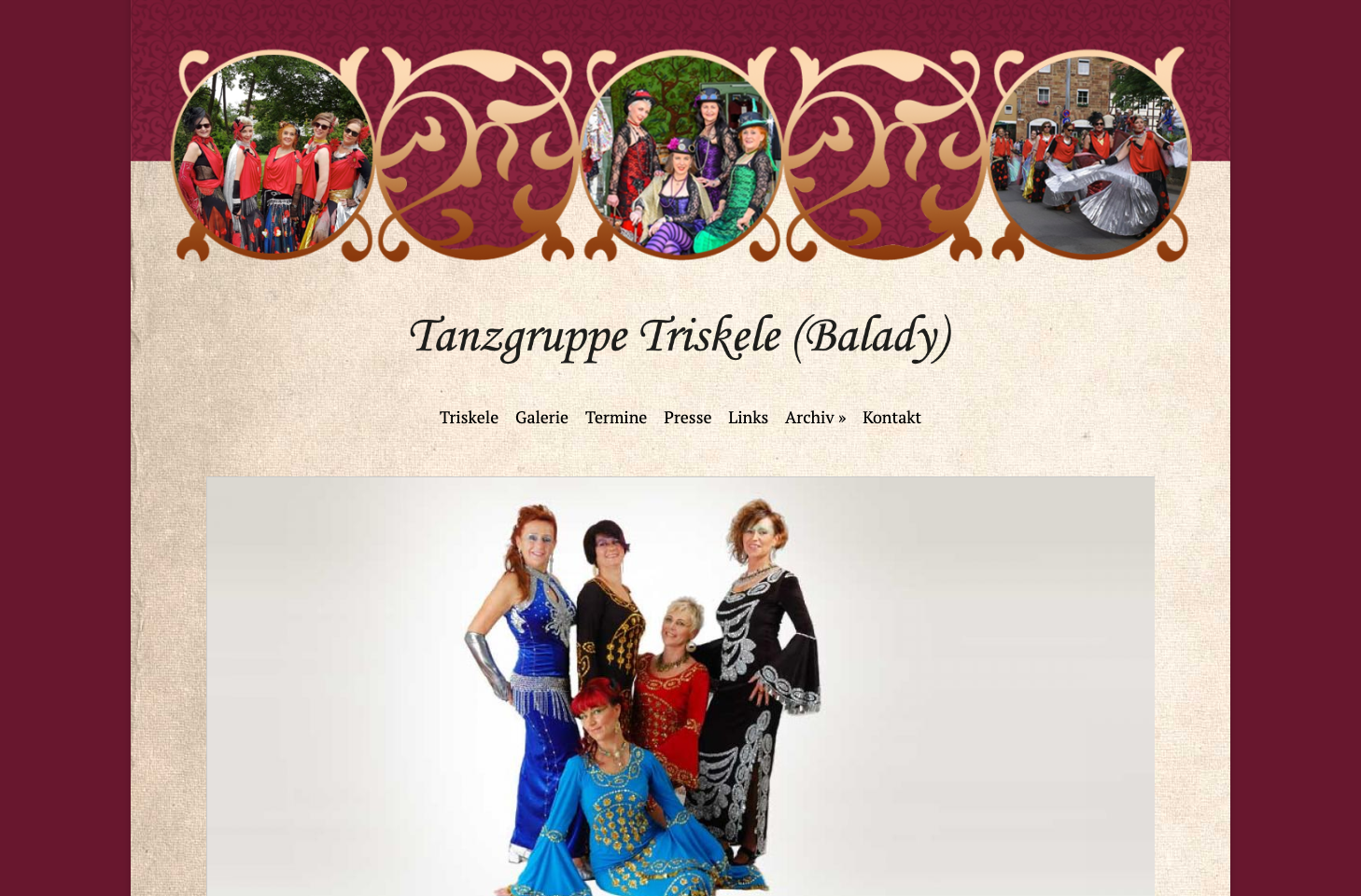 Für die Tanzgruppe Triskele habe ich 2018 eine neue Webseite auf Basis von Drupal 7 gestaltet und umgesetzt. Die Seite präsentiert die Gruppe, ihre Auftritte und Veranstaltungen in einem klar strukturierten, bildstarken Design. Ziel war eine leicht pflegbare Plattform, die sowohl aktuelle Termine als auch Einblicke in die künstlerische Arbeit der Tänzerinnen ansprechend vermittelt.